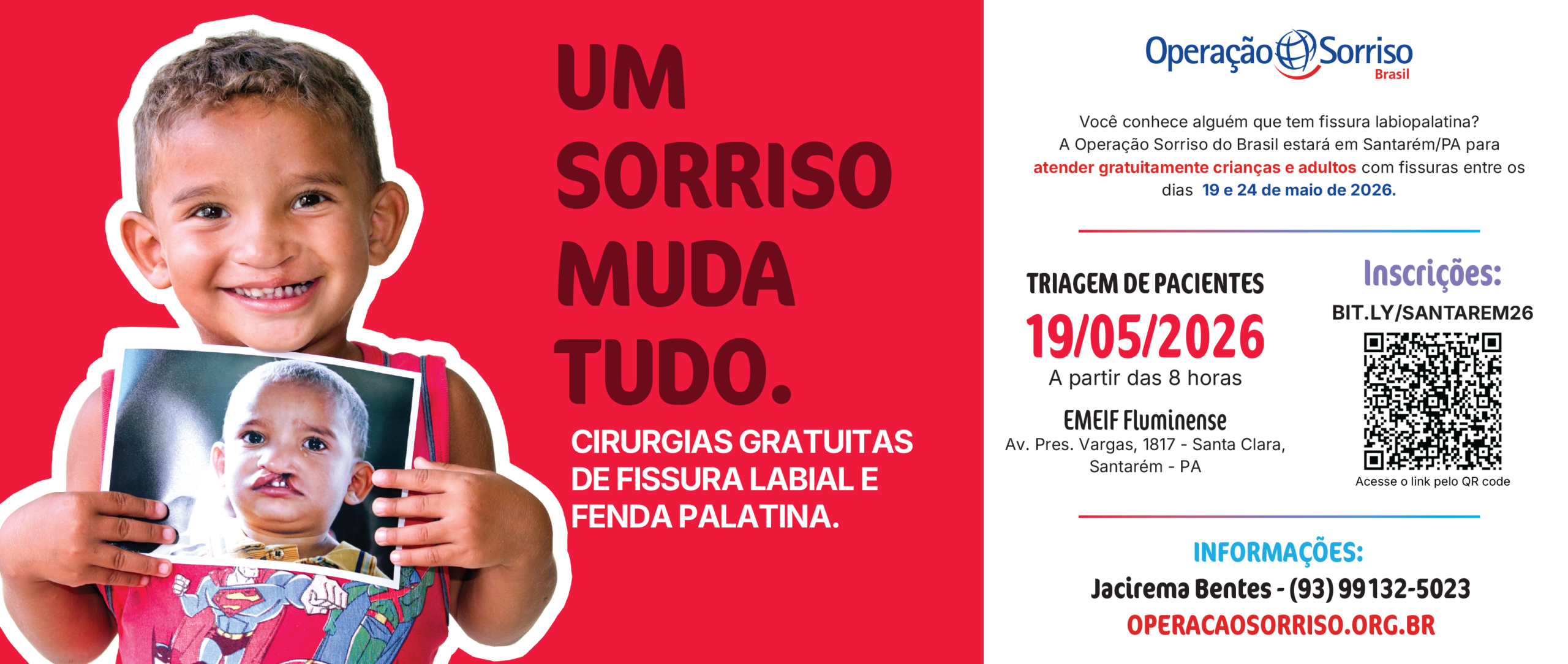 Uma criança com fissura labiopalatina tem dificuldades para comer, falar e ser alfabetizada, mas você pode mudar isso. Nossas cirurgias levam menos de 45 minutos para colocar um sorriso novo e transformar a vida dessa criança e de sua família.
